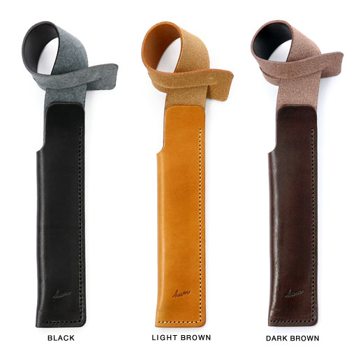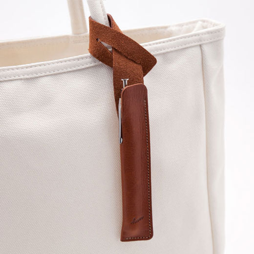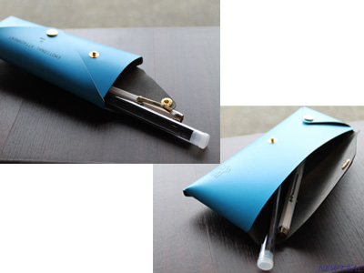 一枚のレザーから組み立てられたペンケース。